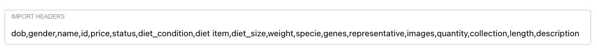 Set your import header fields. The header import fields are used to define the information you will import about your animals for buyers to see.